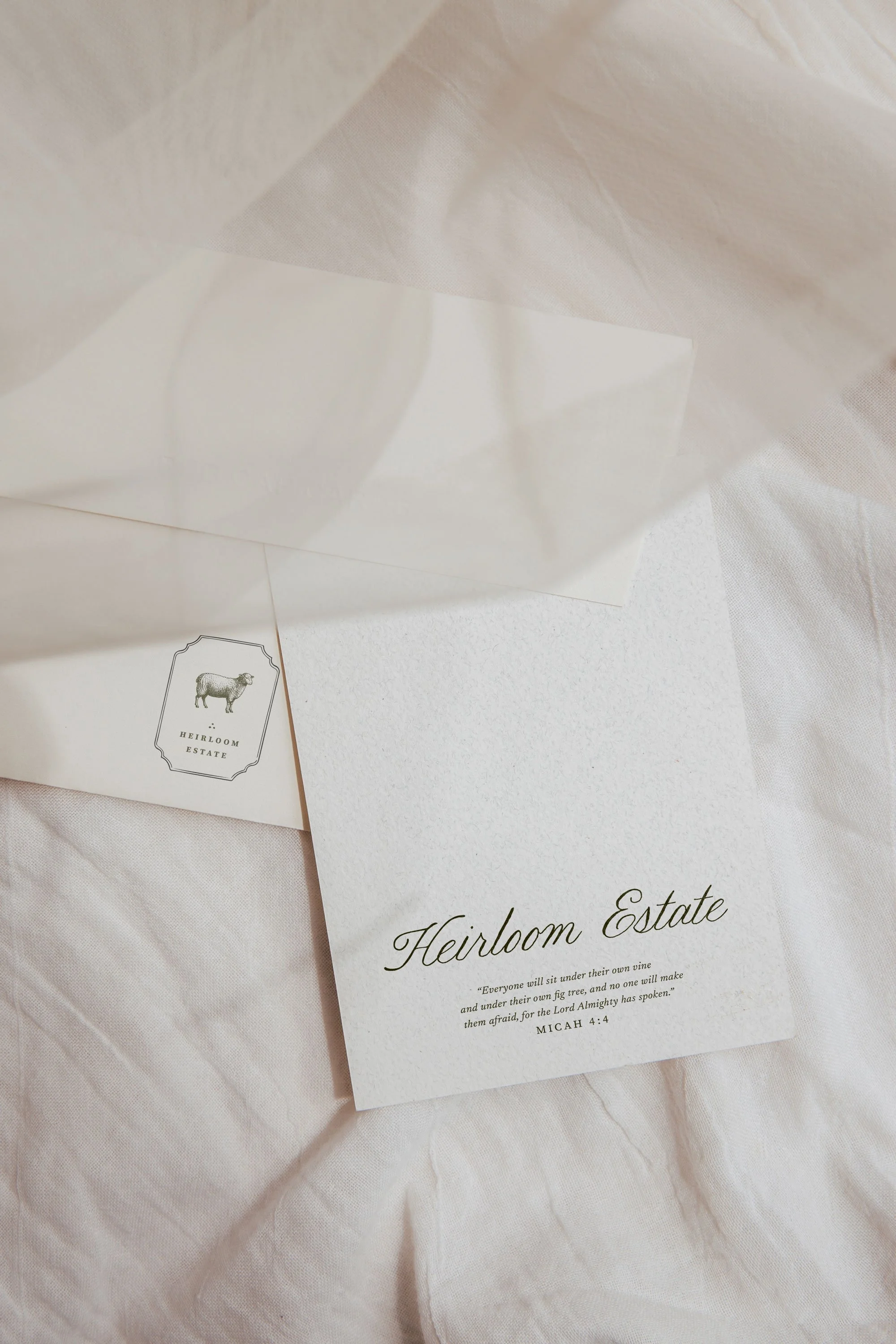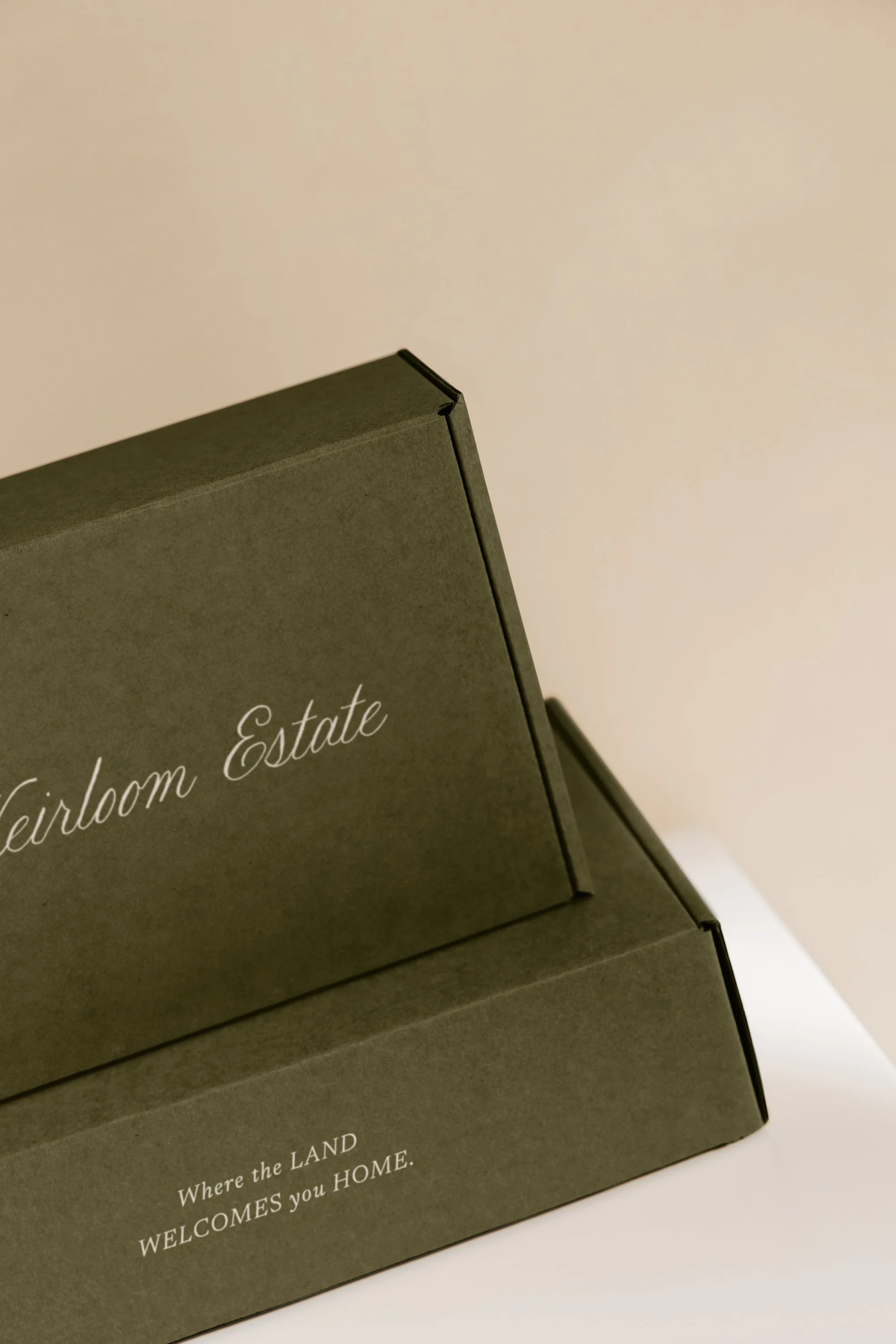 The Heirloom Estate brand identity was designed to feel timeless, intentional, and deeply storied—an identity rooted in legacy rather than trend. The custom HE monogram draws from heirloom markings and old-world craftsmanship, carrying a sense of age, care, and permanence, while the typography balances fluid movement with classic structure to reflect both grace and longevity. A muted, patina-inspired color palette and subtle textures reinforce the feeling of something collected over time—worn in, not worn out—allowing the brand to feel grounded, confident, and enduring without needing excess or ornamentation.