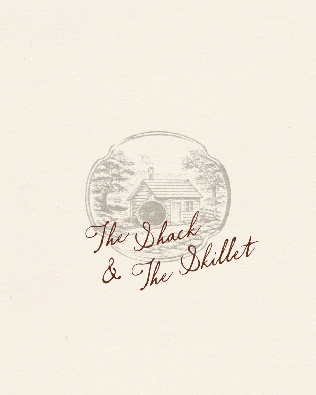 The Shack and The Skillet is a lifestyle brand rooted in the land, gathering, and the kind of meals and moments that bring people back to the table, offering handmade wooden goods alongside pieces that celebrate slow living. Visually, the brand is anchored by the shack and cast iron skillet illustration, symbols of heritage, craft, and hospitality. The hand drawn line work reflects the care and detail of something made by hand, while the typography carries strength without losing warmth. The color palette draws from soil, smoke, grain, and fire, creating a grounded foundation that feels lasting and real. Every element was designed to extend naturally into wooden products, packaging, journals, and future experiences that reflect a life shaped by tradition and honest work.